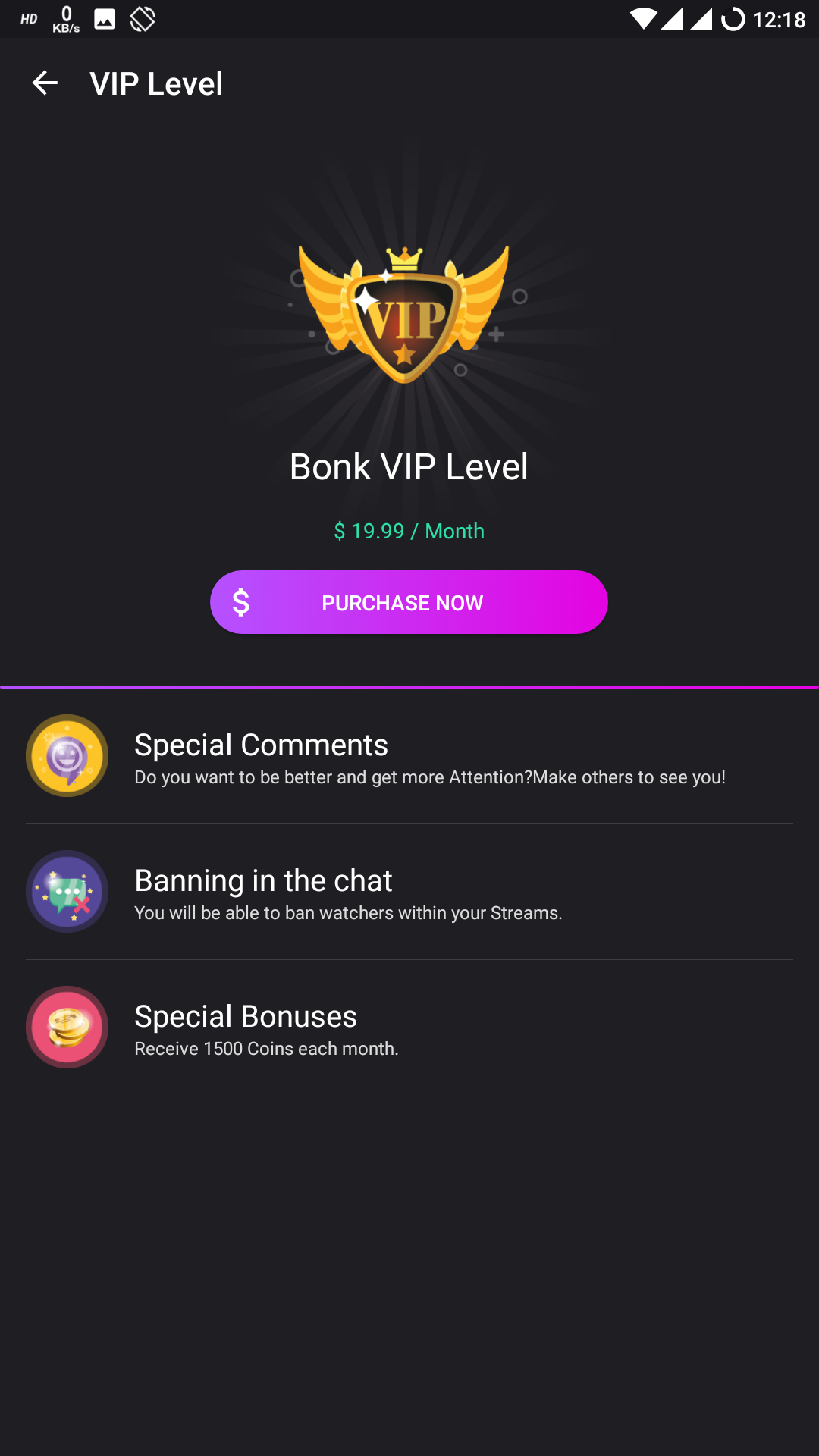 VIP badges are available for those with 20 bucks to spend / month on this application, which has additional perks than the free users like special comments, Moderating streams and points every month.