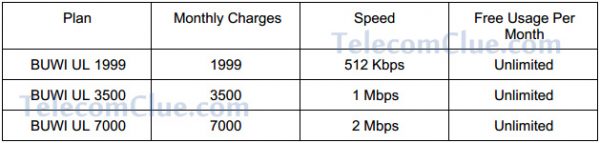 For Purchase­Modem price Rs.1500 (for all type of modems) + 1 Month plan charge