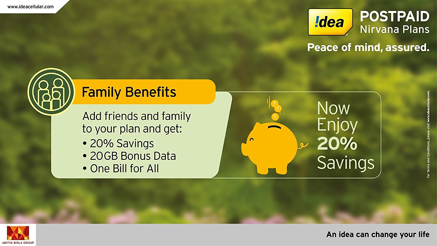 The popular telecom operator Idea Cellular has launched a range of postpaid plans. Idea Cellular is presently offering ‘Nirvana’ plans, which provides a one-stop solution and gives the flexibility of unlimited calls, internet with data carry forward, assured device security, savings on family bills, free roaming across India, ISD benefits and priority service and offers, in addition to Rs. 2,000 cash-back on the new 4G handset. This plan is offering comprehensive solutions beyond just mobile connectivity. The product will be promoted through a high-decibel promoting effort which will kick begin with a TVC which went on air today.