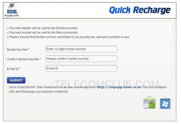 Enter Your Friend’s BSNL Number and some EMail address there , and Click Submit