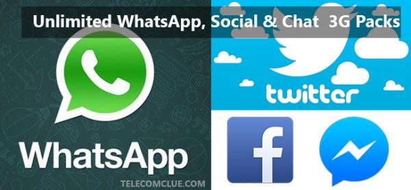 Tata docomo introduced Unlimited whatsapp and social plans as a limited period offer , Social pack includes Facebook, Facebook Messenger and Twitter. Unlimited WhatsApp includes WhatsApp application.